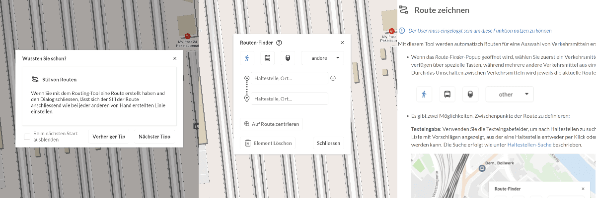 Die Nutzung von mapset ist im Grunde selbsterklärend. Es ist ein wichtiges Ziel unseres Tools, dass alle Funktionen intuitiv verstanden werden, so dass auch Gelegenheitsnutzer ohne Probleme Pläne nach Wunsch erstellen können. Dennoch haben wir gesehen, dass für die Nutzung aller, auch der etwas versteckteren, Funktionen in mapset eine Anleitung hilfreich ist. Deshalb haben wir drei Arten von Hilfen und Anleitungen entwickelt.